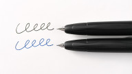 This retractable pen opens with a click to reveal a classic fountain pen.