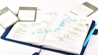 The sticky note base folds over to act as a container for the papers for easy portability. The pad fits nicely into the techo cover pocket so you can pull it out any time.