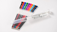 The pen body is clear to allow easy viewing of the colors currently installed. The pen has a non-slip rubber grip made of rubber. The pen can be opened with a single hand, making it easy to change out ink refills.