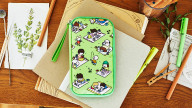 This pouch features a fun and heartwarming illustration by children’s book author Shinsuke Yoshitake. The design matches the 2018 Hobonichi Techo Spring cover of the same name. It’s fun to look at each of the characters in the illustration and take in all the excitement (or relaxation) happening. The pouch interior is a deep green, and the zipper includes a looped strap for easy handling.
