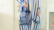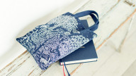 This small tote bag is made with the same textiles used in the minä perhonen techo covers imagine and mermaid. It’s big enough to fit a Hobonichi Techo Cousin along with your wallet and any other personal items you’ll need when you’re out.