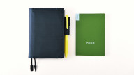 The booklet is thin, also uses Tomoe River paper, lays completely flat, and fits perfectly into a cover pocket due to its slightly smaller size than the planner book.