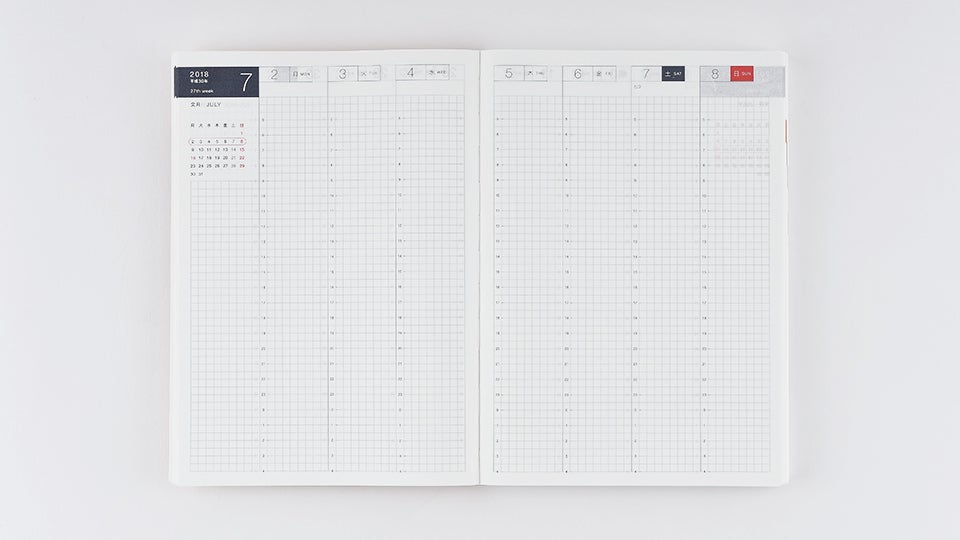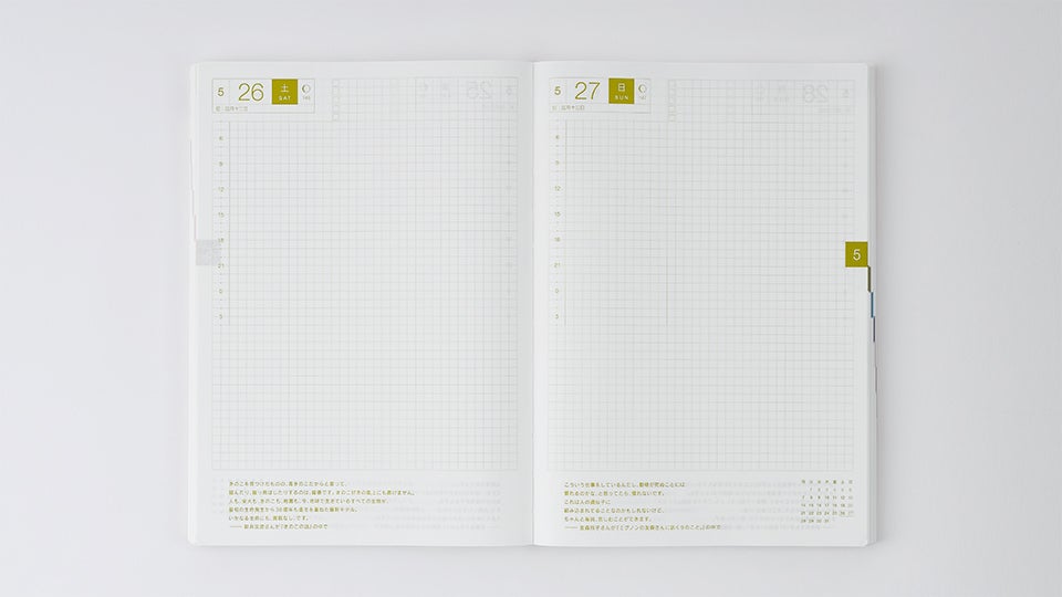 The Hobonichi Techo Cousin is twice the size of the A6 Hobonichi Techo Planner. The book’s big, spacious pages and page-per-day format provide a place to generously fill an entire year’s worth of spur-of-the-moment thoughts. The various calendars and pages are great not only for writing down your plans for the day, but for doodling, pasting event tickets, using as a normal notebook, and filling in pages with any whims that come to mind.