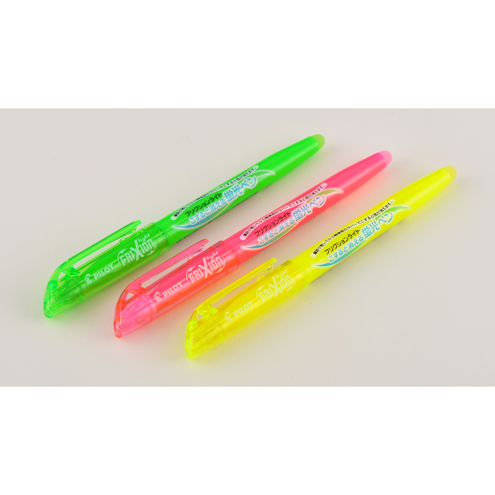Frixion Light (3-Color Set)The Frixion Light highlighter marker uses erasable ink that can be rubbed off with the marker’s built-in eraser once the ink is dried. This 3-color set comes in yellow, pink, and green.