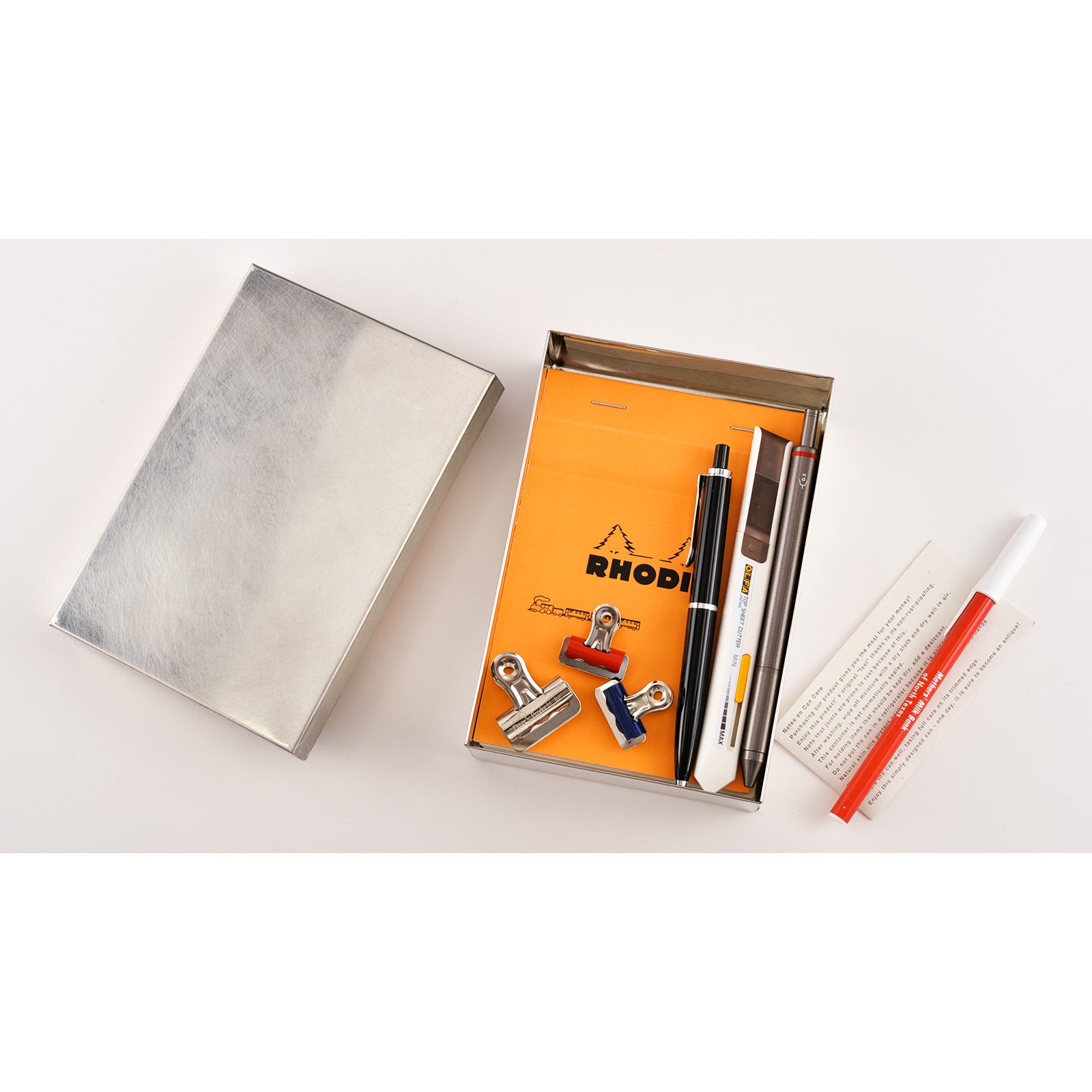 Tin CanThis postcard-size square tin container is an original item by SyuRo, an artisan brand that carries on Japanese tradition and craftsmanship in their durable household utensils. The container is great for storing postcards, photographs, and small accessories that gather around your desk.