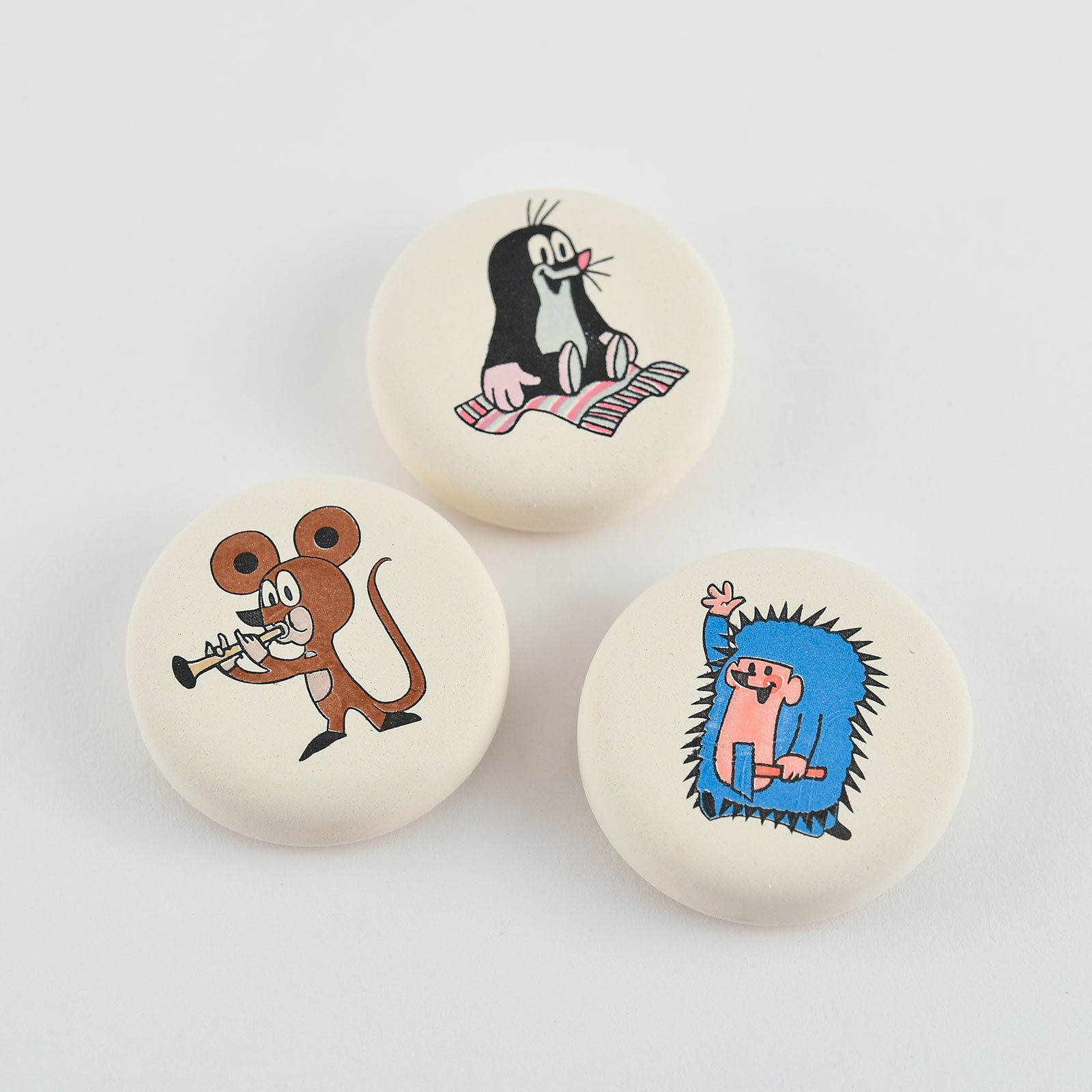 Soft Eraser Set - MoleMade by the venerable Czech stationery maker Koh-I-Noor, this eraser set brings you 3 natural rubber erasers printed with characters from Krteck, a mole character created by Czech picture book author Zdeněk Miler. Popular among Czech children on TV and in picture books, the adorable mole and its friends are so cute that you’ll want to just keep it as a decoration!