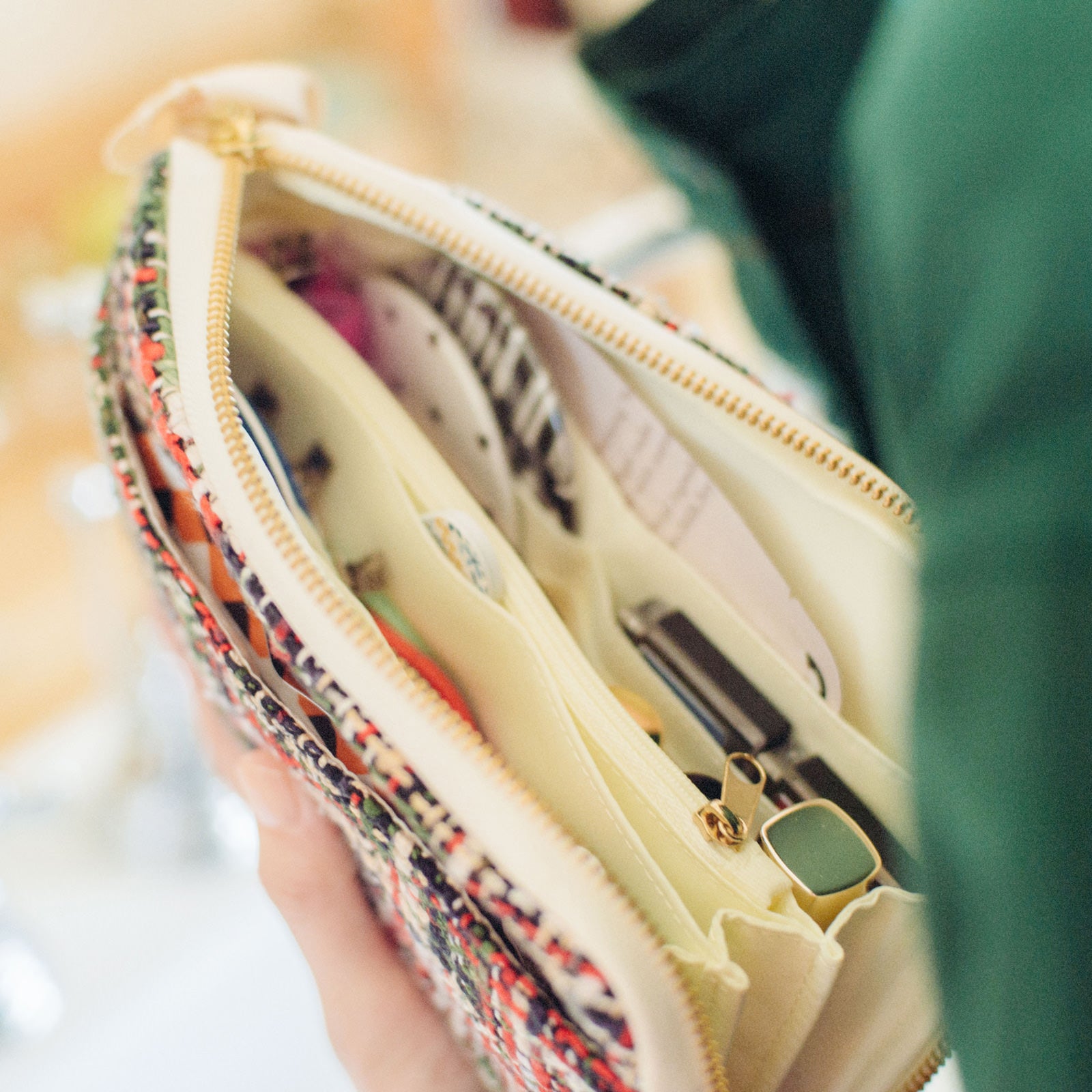 3. All the different compartments make the Áne a great makeup bag. You can organize the items by size and shape.