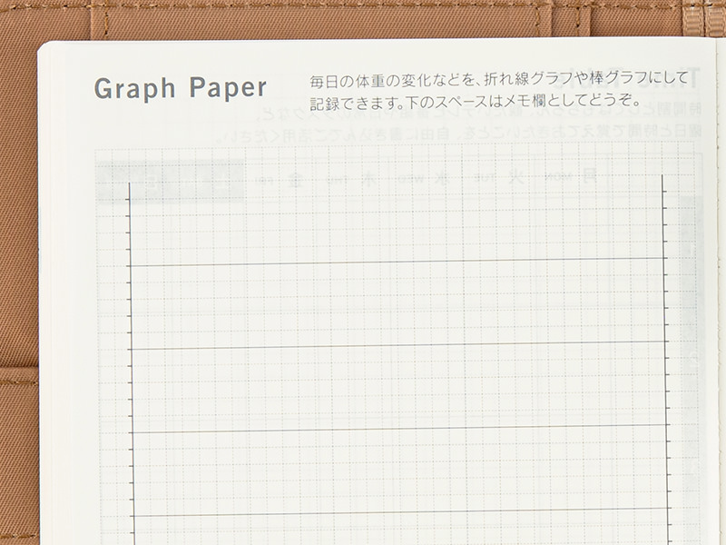 The graph paper is convenient for recording your daily weight or other changes when you have a certain target in mind. The horizontal X-axis along the bottom contains 31 boxes to easily cover a one-month span, with extra space at the bottom for additional notes.