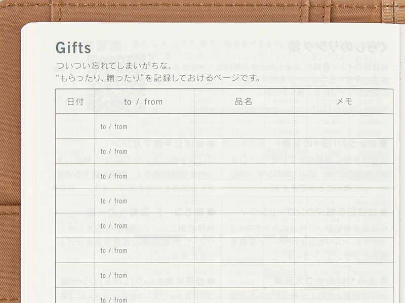 Record the presents you’ve given or received in the Gifts page so you don’t forget who gave what to who and when. This is also helpful for thank-you cards. There are spaces for 17 entries in the Original Size book and 20 entries in the Cousin Size book.