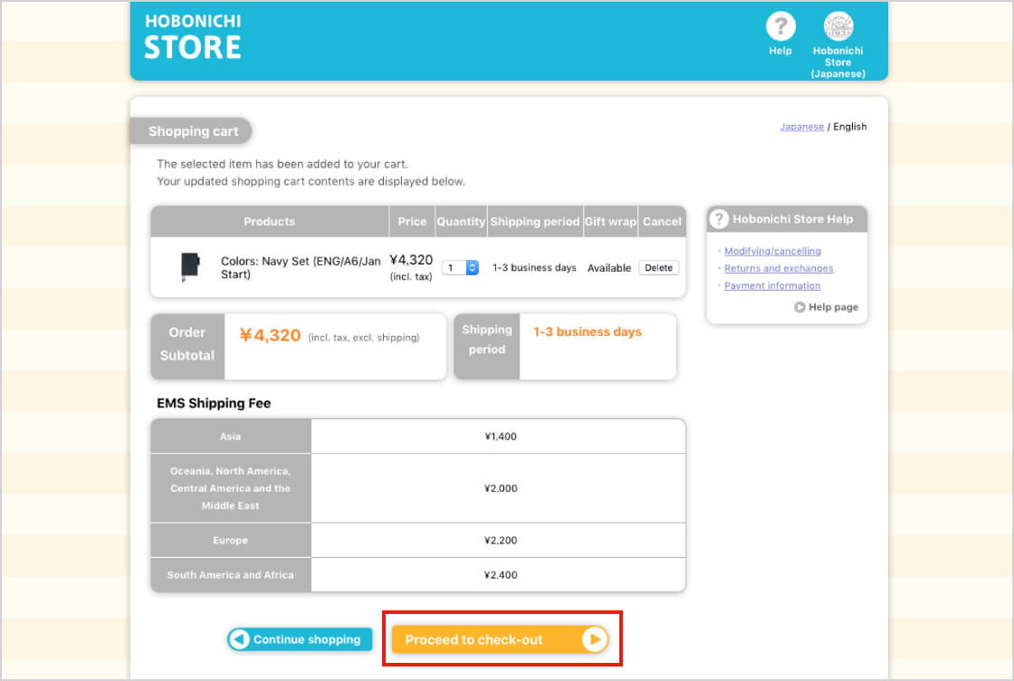 *All Hobonichi Store orders require an account to complete a purchase. New accounts can only be made at the time of a purchase.