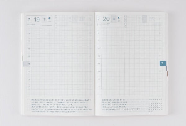 Each page has fun and interesting daily quotes chosen from articles published on the Hobonichi website.