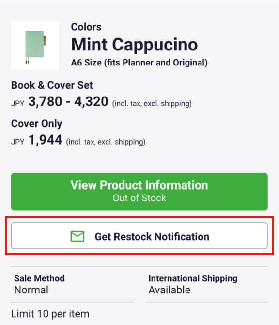 *This service is only available for the Hobonichi Techo. Restock notification emails are not available for accessories.