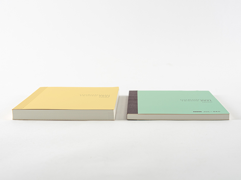 The covers are matched with a color scheme of lime yellow and ice blue. The spine tape is a reddish-brown to give the color scheme a unique look.