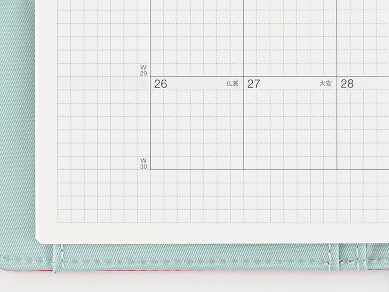 The graph paper design is lightly printed to make it easier to write in your plans and take notes in an even line. The blue gray and red print both allow for high visibility when writing in the calendar.