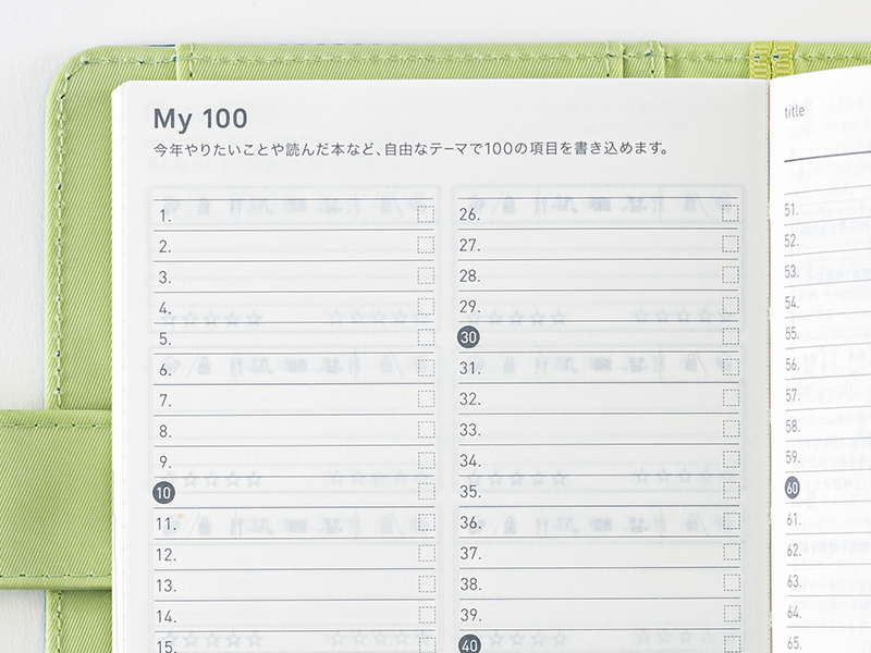 This popular 100-item list from the 2018-edition Hobonichi Techo has made its comeback. You can make a list for anything you want: things to accomplish this year, books you’ve read, movies you’ve seen, snacks you’ve tried, shops you want to visit — it’s up to you!