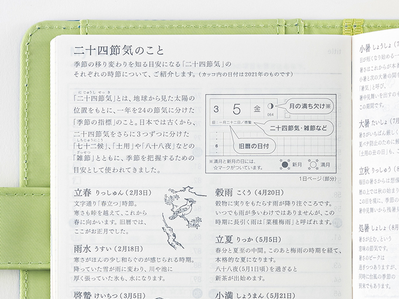 This section explains the names and origins of solar terms that make up the 24 points in traditional East Asian lunisolar calendars. These include well-known days such as the start of spring and the winter solstice.