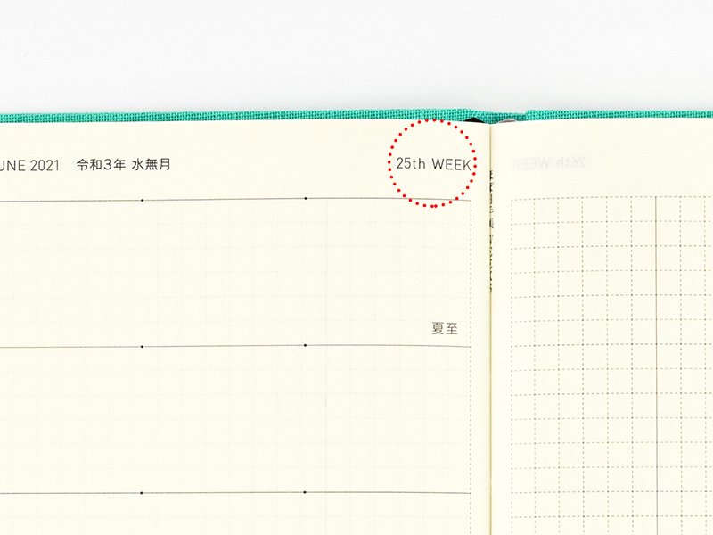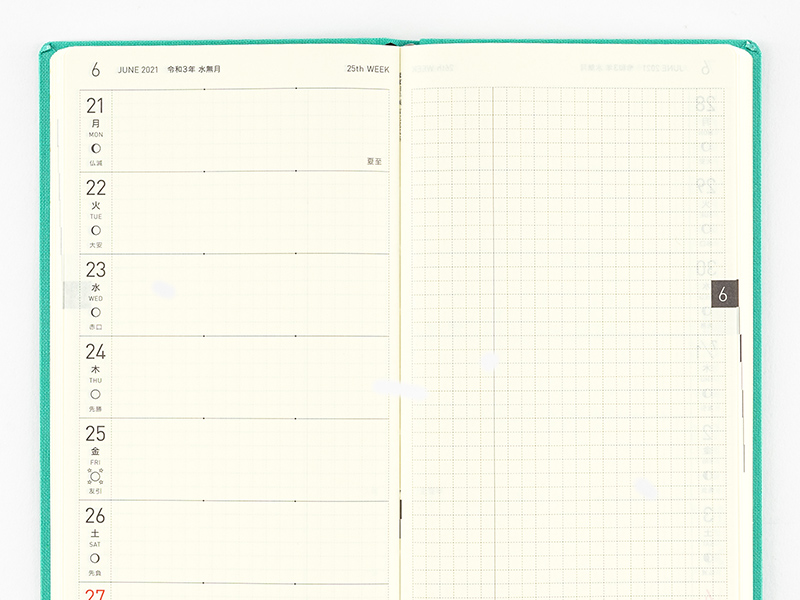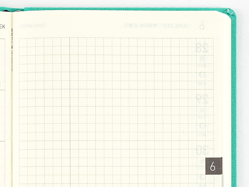 The right page on each weekly spread contains blank graph paper to give full reign to users when drawing out plans or writing out schedules. You can also draw lines across the page to correspond with each of the 7 days on the left to give yourself more writing room. At 3.55 mm, the graph paper’s grid is slightly smaller than that of the daily planners.