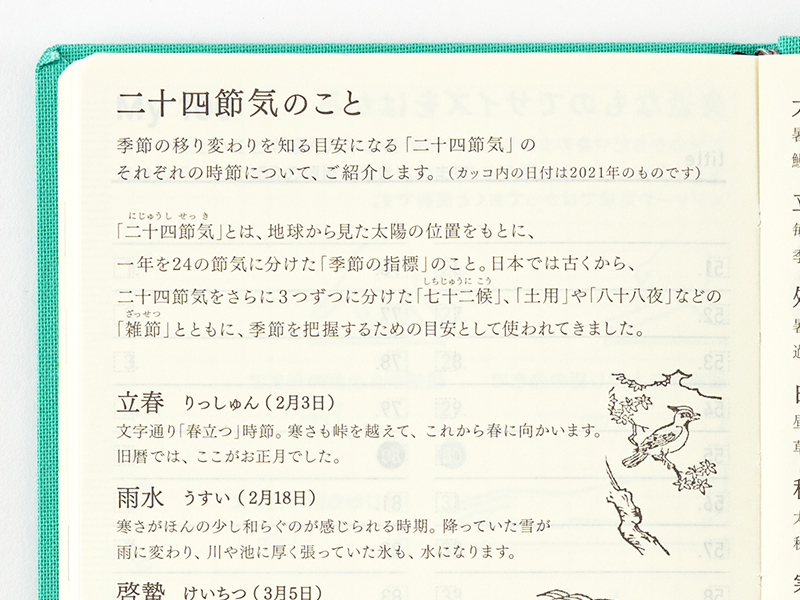 This section explains the names and origins of solar terms that make up the 24 points in traditional East Asian lunisolar calendars. These include well-known days such as the start of spring and the winter solstice.
