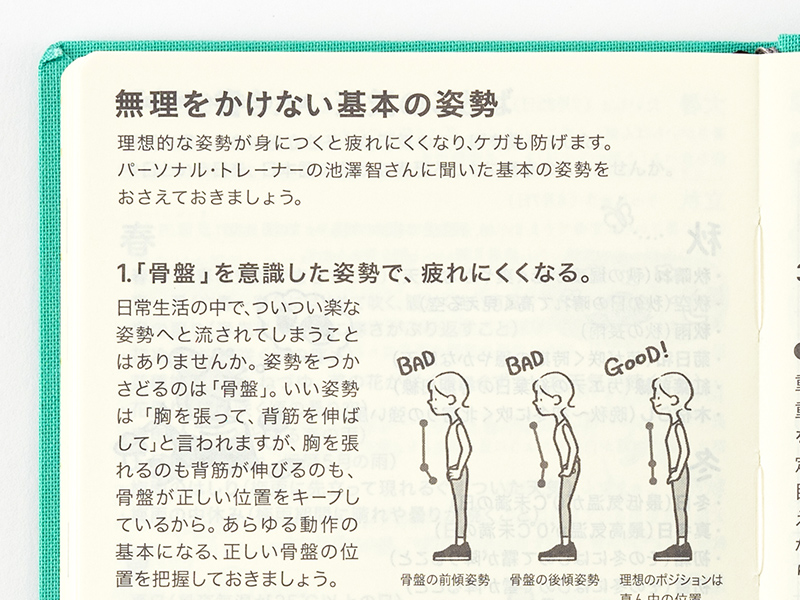 The latter half of Weeks is filled with 3.55 millimeter graph paper designed with a subtle vertical line that makes it easy to draw out your schedule or take notes. Page numbers are listed on the corner of each page.
