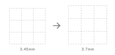 Graphic designer Taku Satoh oversaw a number of refinements to the book’s design — while the changes were major, they were difficult to spot at a glance. The graph paper squares were reduced in size from 4 mm to 3.45 mm and eliminated from behind the date at the top of each page; the criss-crossing dotted lines were redrawn to meet evenly at every intersection.
