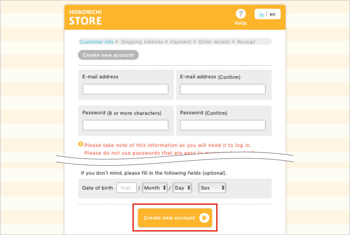 *All Hobonichi Store orders require an account to complete a purchase. New accounts can only be made at the time of a purchase.