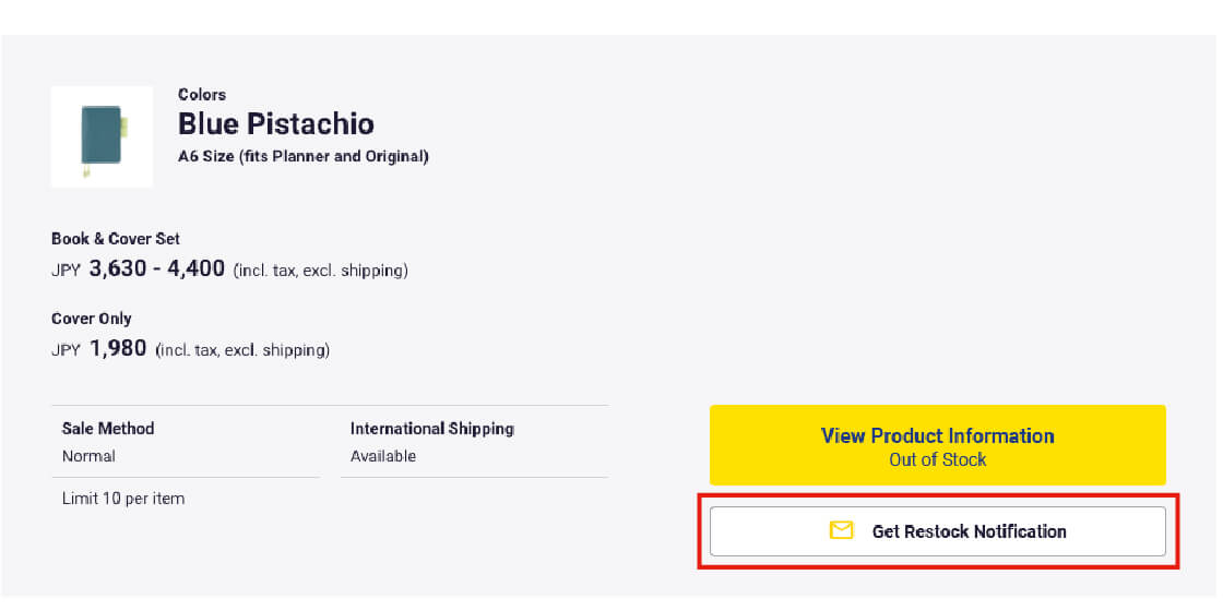 *This service is only available for the Hobonichi Techo. Restock notification emails are not available for accessories.