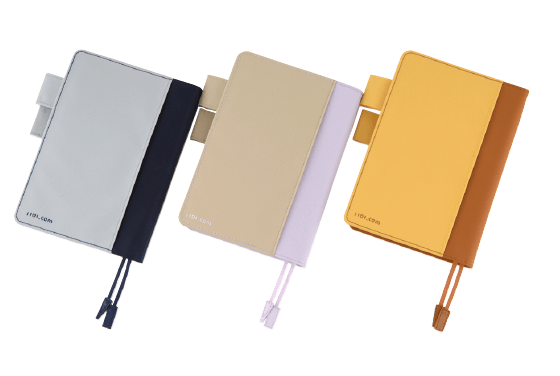 Already the book had many characteristics of the techo: It was an A6-size page-a-day planner with thin-yet-durable Tomoe River paper that allowed for its slim construction. Each month was printed with different-colored ink, pages featured a quote at the bottom, and handy bonus pages in the back offered a variety of content. Lay-flat binding allowed it to sit completely open on a desk, and it fit nicely inside a cover with lots of useful pockets.