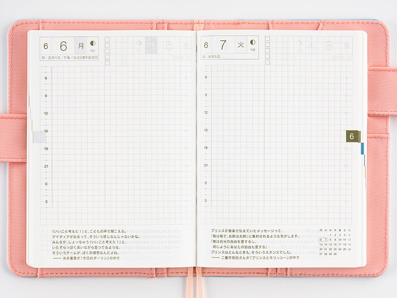 From the heartfelt to the humorous to the whimsical, each page of the planner features a quote in Japanese, specially selected from the planner’s parent site, Hobo Nikkan Itoi Shinbun. Currently, the quotes for the Original version are only in Japanese. If you would like the quotes in English, please buy the Hobonichi Techo Planner.