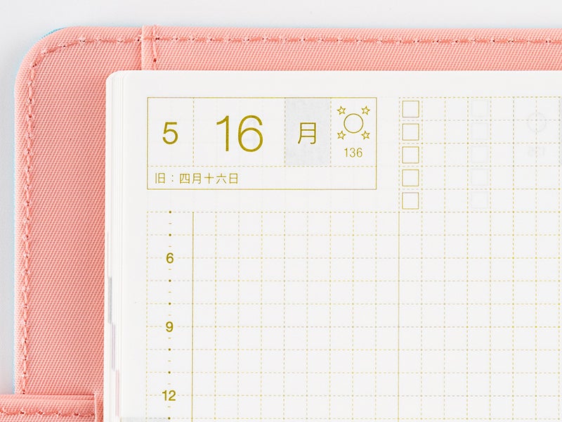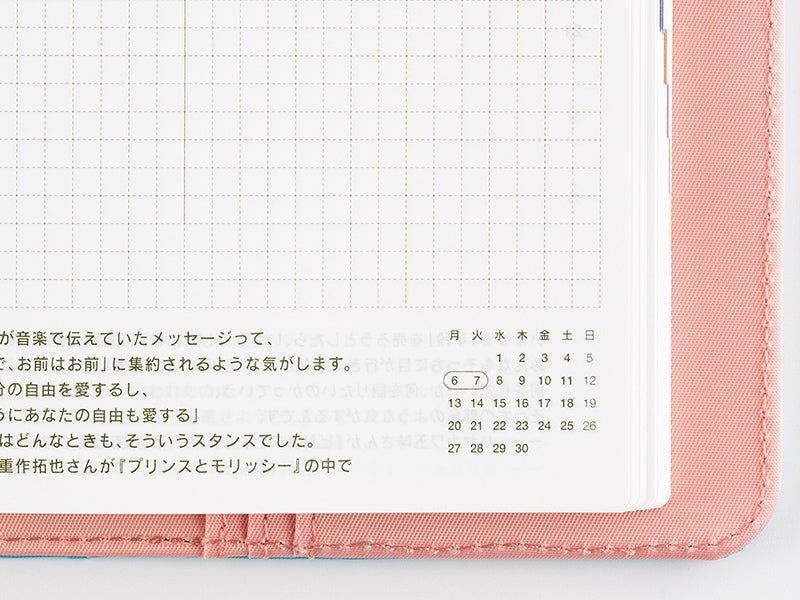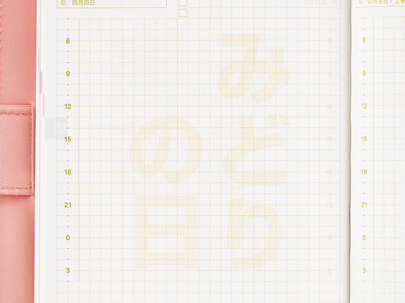 The Japanese planners have slightly smaller graph paper than the English version. The 3.7 millimeter graph paper was the result of extensive tests for an ideal size for writing in Japanese, although the size also allows comfortable writing in any language. Feel free to write along the lines of a single line or two ― or just ignore the lines altogether.