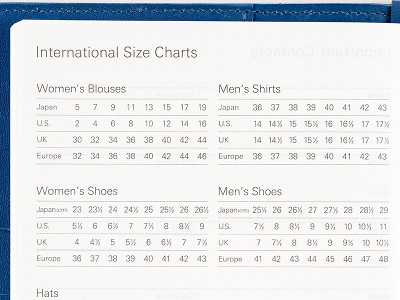 Comparison charts for Japan, the US, the UK, and Europe include items such as clothing, shoes, hats and rings.