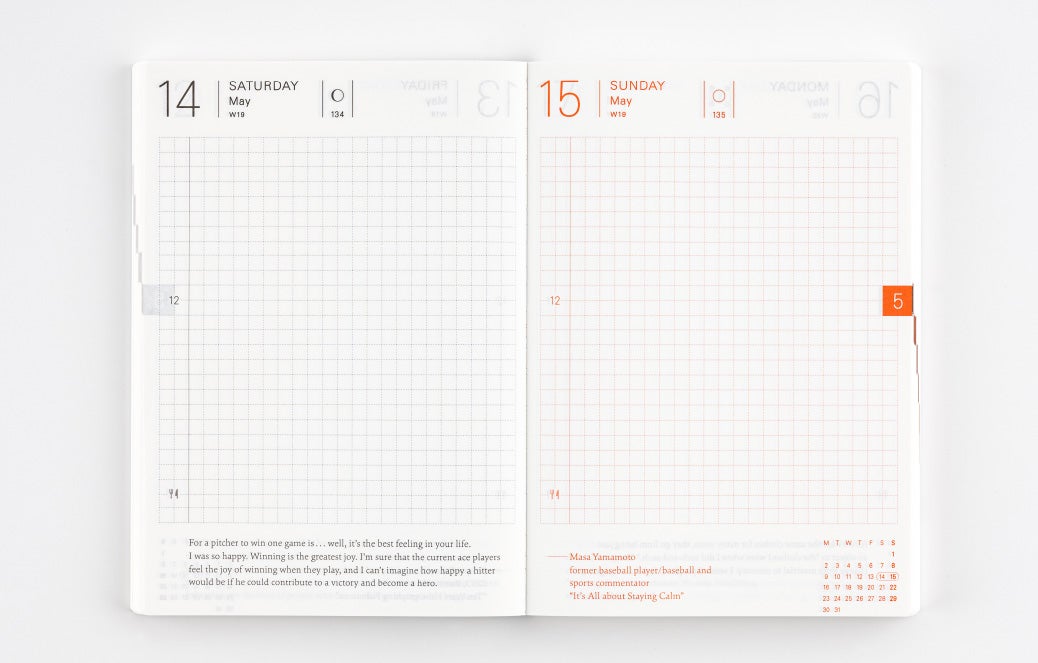 You can see all the basic features of the Hobonichi Techo in this layout from the Original. Each feature has received years of careful consideration.