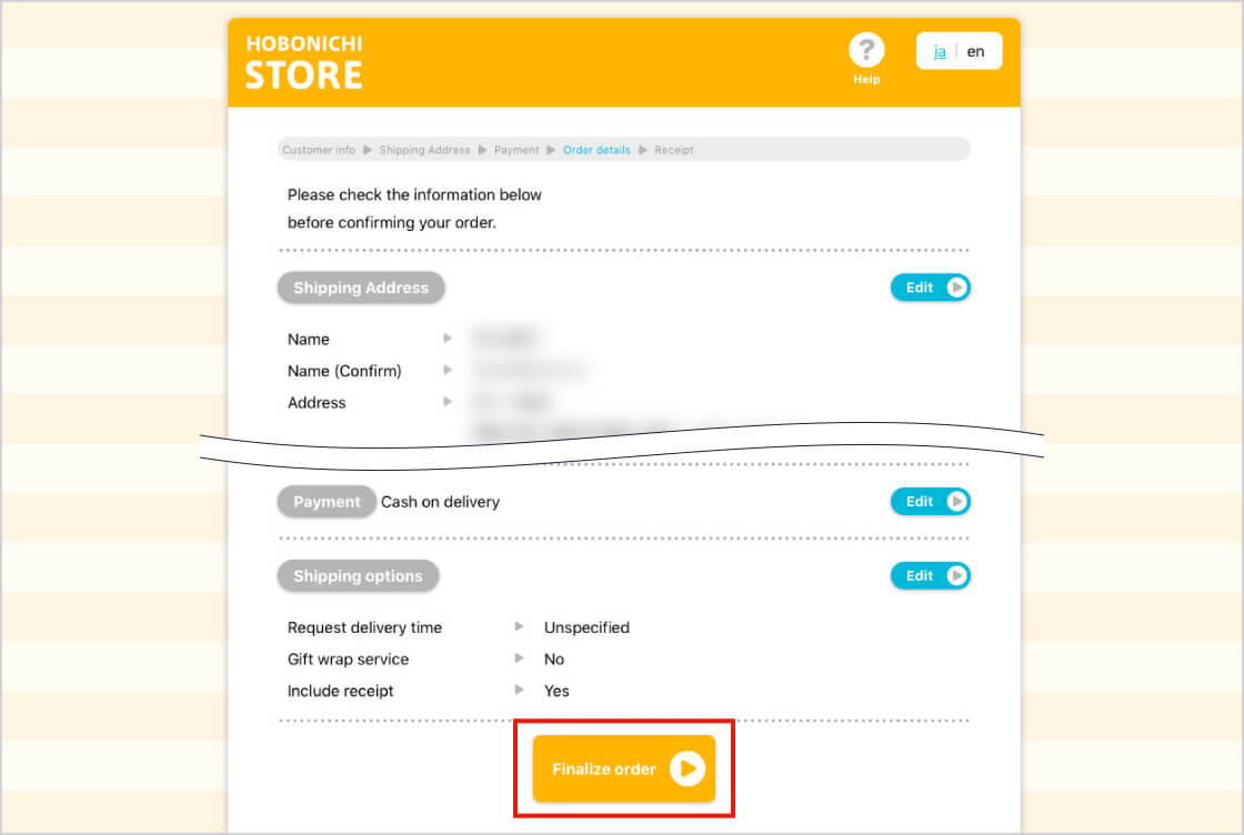 Orders placed within Japan can request a gift box for an additional 550 yen per order.