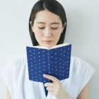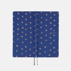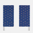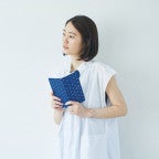 Painted polka dots from the watercolor artist Naomi Ito distinguish the Pocho cover. Uneven gold dots spread across a brilliant blue-dyed fabric—in Japanese the name “Pocho” illustrates the way each was individually “plopped” onto the background. There’s something calming about the pattern of the dots in this timeless design.