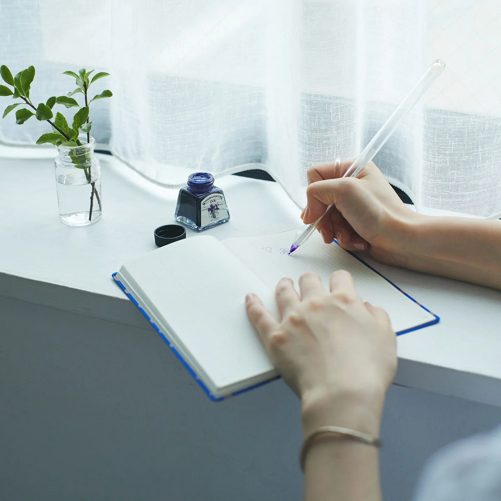 The Hobonichi Techo's Tomoe River paper is designed to prevent bleed-through, but some fountain pens and water-based ink pens are not compatible with this paper. When switching to a new pen, we recommend testing the pen somewhere in the book, such as the back memo pages, to see if the ink bleeds through or takes an especially long time to dry.