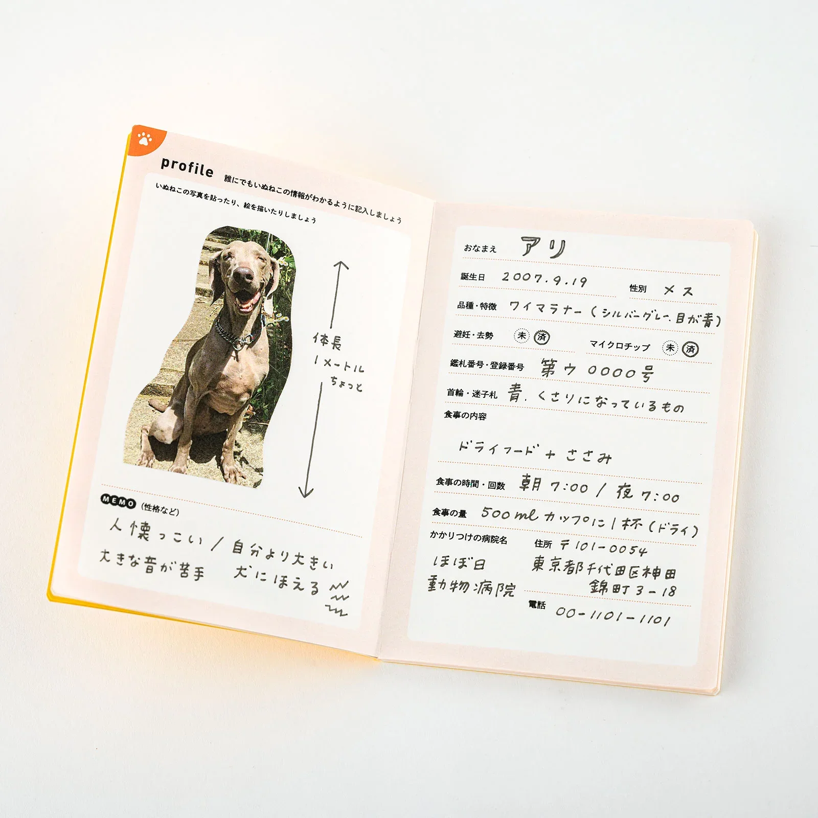 Few of the contents have been revised too. As well as revising the Profile page, we added a page to keep a detailed record of your pet's health when you start using the booklet.