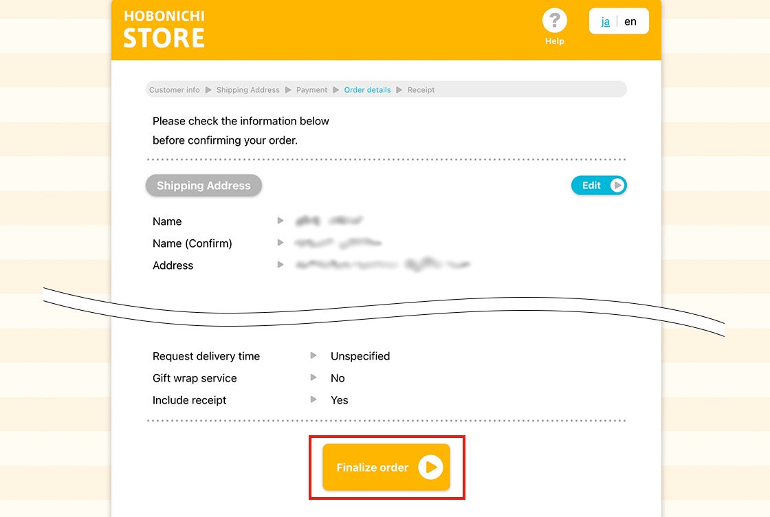 Domestic orders are shipped with Japan Post’s Yu-Pack service, through which delivery times (not dates) can be requested.