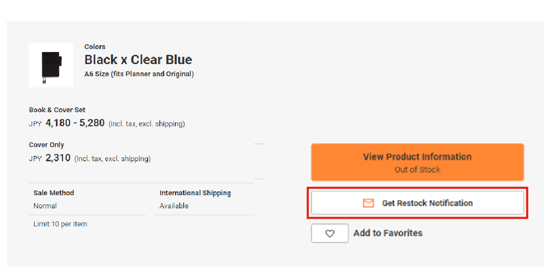 *This service is only available for the Hobonichi Techo and the Drawer Pouch. Restock notification emails are not available for accessories.