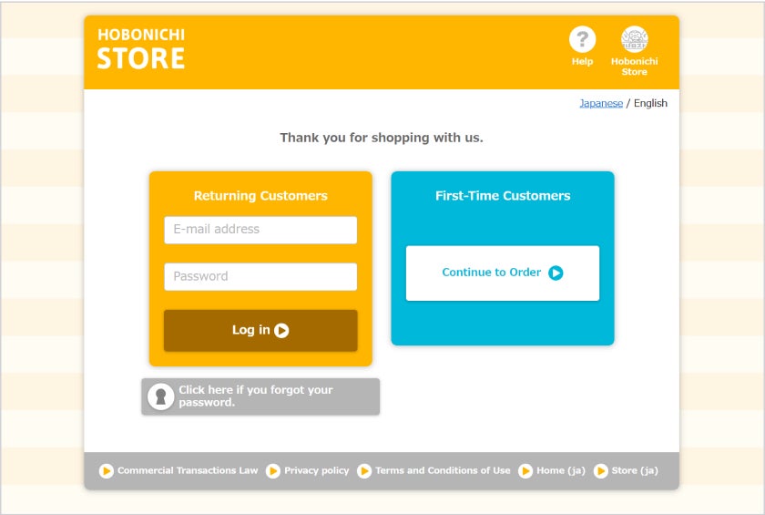 *All Hobonichi Store orders require an account to complete a purchase. New accounts can only be made at the time of a purchase.
