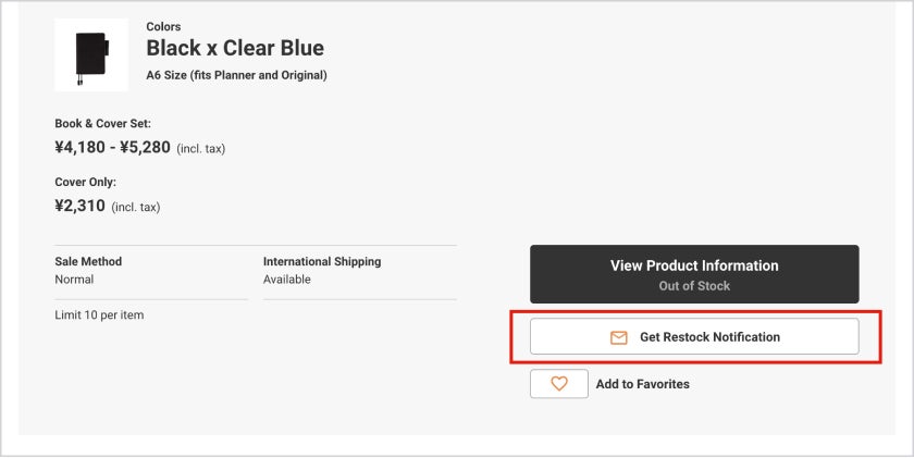 *This service is only available for the Hobonichi Techo and the Drawer Pouch. Restock notification emails are not available for accessories.