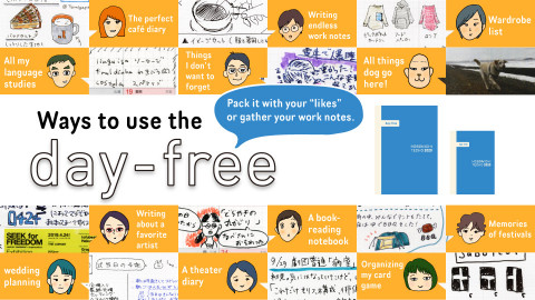 The Day-Free comes with a bright blue cover reminiscent of a lovely clear sky. The words day-free and HOBONICHI TECHO 2026 are printed in ivory.