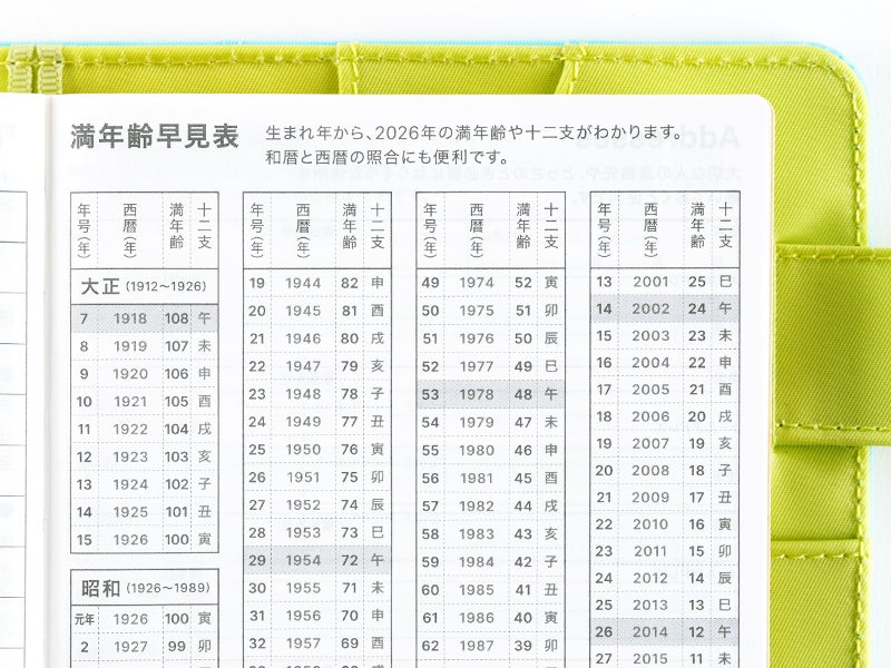 This table lists the year people were born, and their age in 2026 at a quick glance. The number to the left of the year is the corresponding year based on the traditional Japanese Imperial Era calendar, and to the right of their age is the character for the Chinese Zodiac. Highlighted years have the same Chinese Zodiac as 2026 (Year of the Horse).