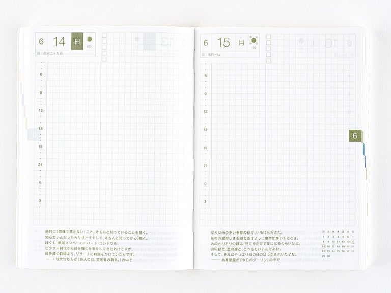 Each spread of the techo features a quote specially selected from the Hobonichi website.