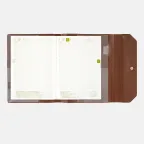 The inner left part of the cover includes a clear pocket that can store cards, while the flap above that can be tucked into your techo and used as a bookmark.