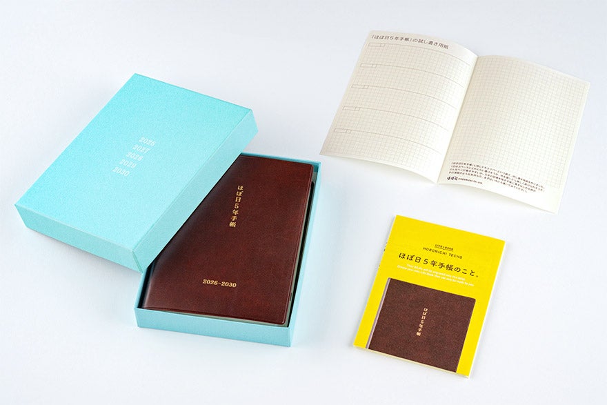 The Hobonichi 5-Year Techo will be delivered in a turquoise blue paper box. The box will contain a user manual and a test sheet of paper for you to get a feel for the paper and test pen or ink compatibility.