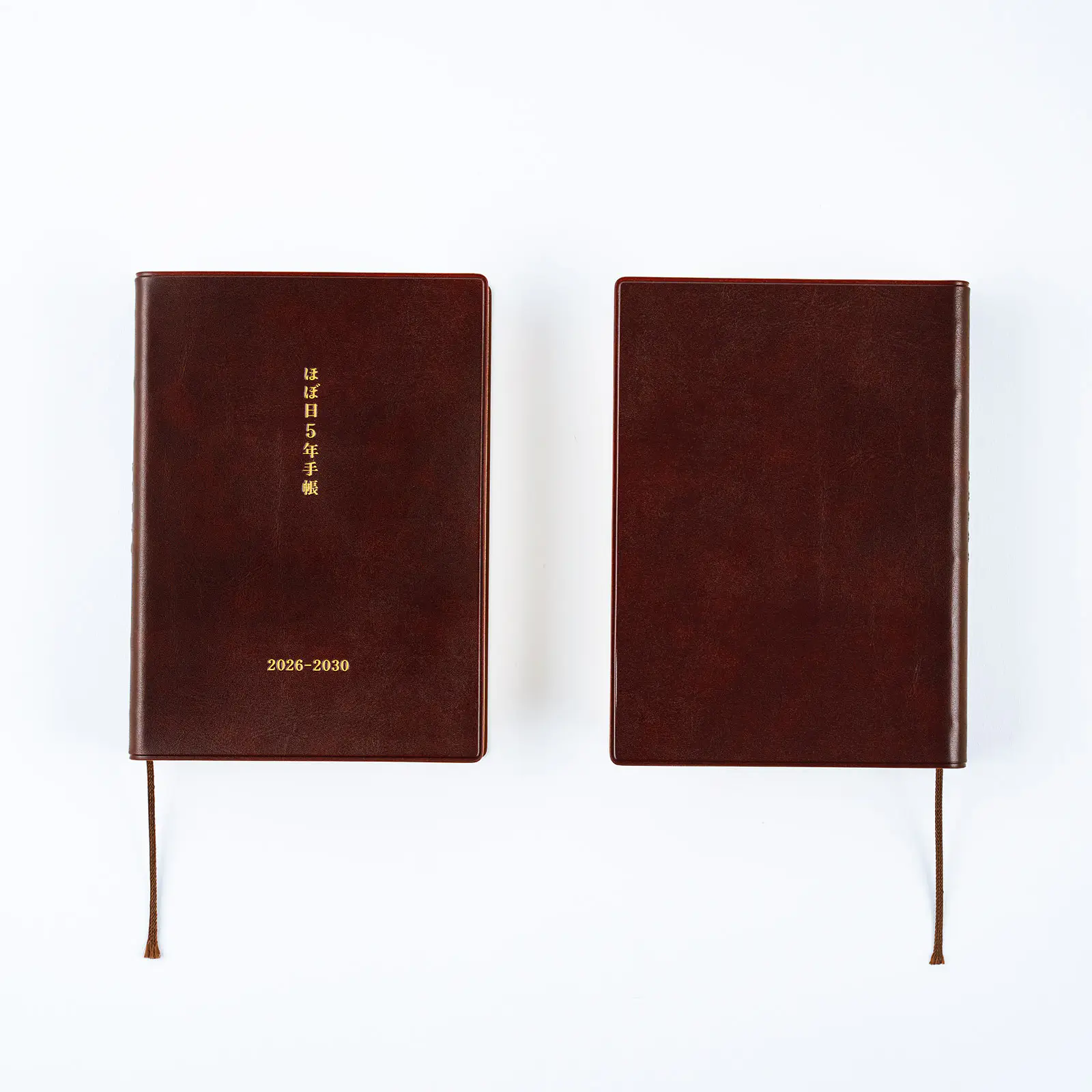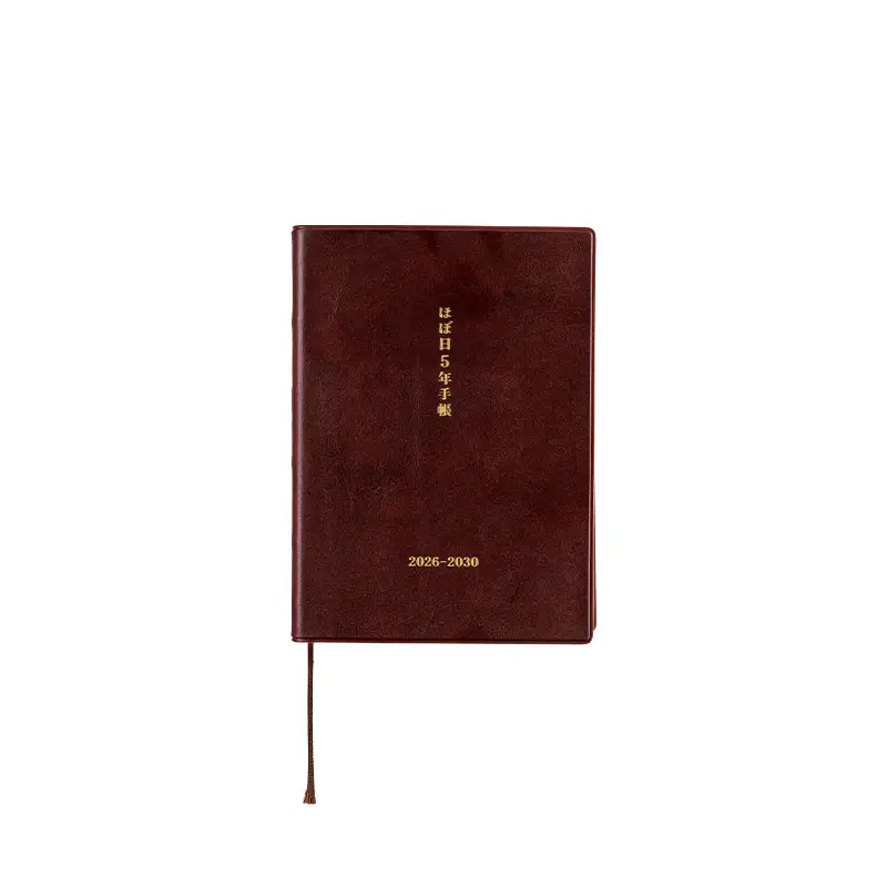 This A6-size book has pages dated across a 5-year span. The textured cover is a calming shade of brown with the years foil-pressed in gold, and the book contains a dark brown bookmark for a complete look that works well without adding an additional cover.