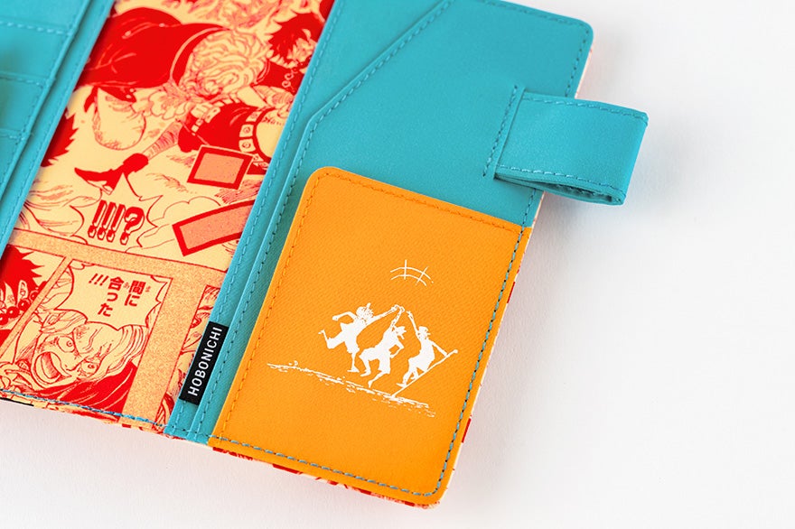 A powerful scene from “Luff” is also featured in the center of the inner cover. The left-hand pocket features a collaboration logo for ONE PIECE magazine and the Hobonichi Techo.