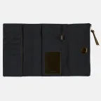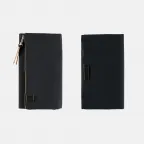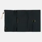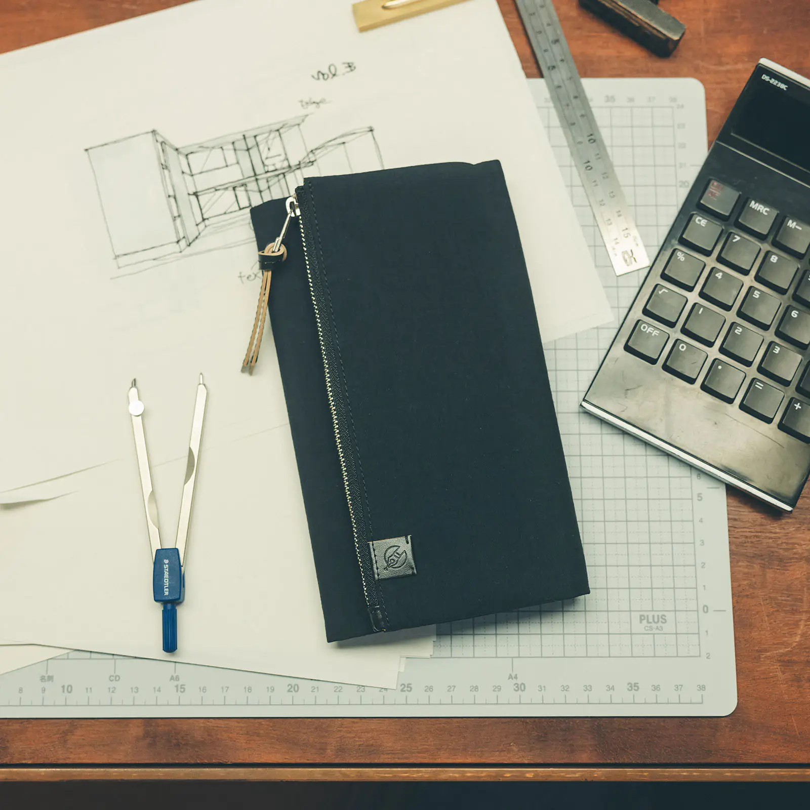 Its standout feature is the generously sized pocket, but its overall appearance remains clean and minimal. A design that works for everyone, in none-accented black. Though it folds into thirds and fastens with a magnetic closure, the cover is light in hand. The aim was effortless elegance, something that looks sharp without being flashy. The material is a soft nylon with a sophisticated sheen.