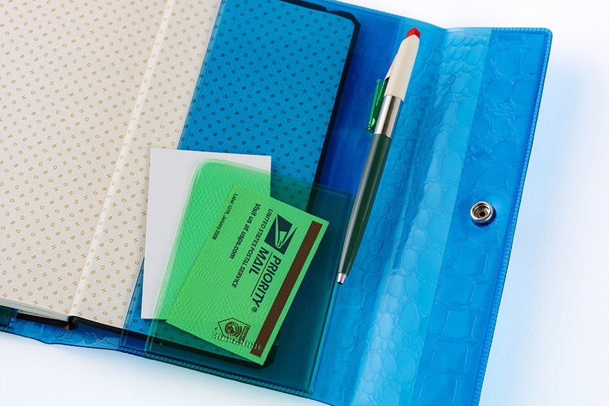 The inside offers plenty of storage. There are card pockets for business cards and other small items, as well as pockets that are perfect for storing sticky notes and other stationery. You can also enjoy displaying your favorite items as part of a visible storage style.
