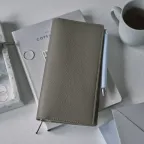 The front of the cover is in a warm gray, while the back is in a cool-toned light blue. A specialized process was used to create this dual-tone on one single piece of leather. The unique sleekness of the leather makes it soft to the touch, and thanks to its finely grained texture, scuff marks will be less visible.