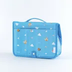 The lid opens wide, so even if you keep a lot of items in the pouch, you can still see what's inside. There's also a handle that makes it convenient for carrying around.